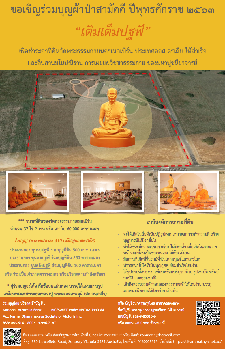 เพื่อการตั้งกองทุนเผยแผ่วิชชาธรรมกายให้ครบทุกรัฐในประเทศออสเตรเลีย แ...Read More